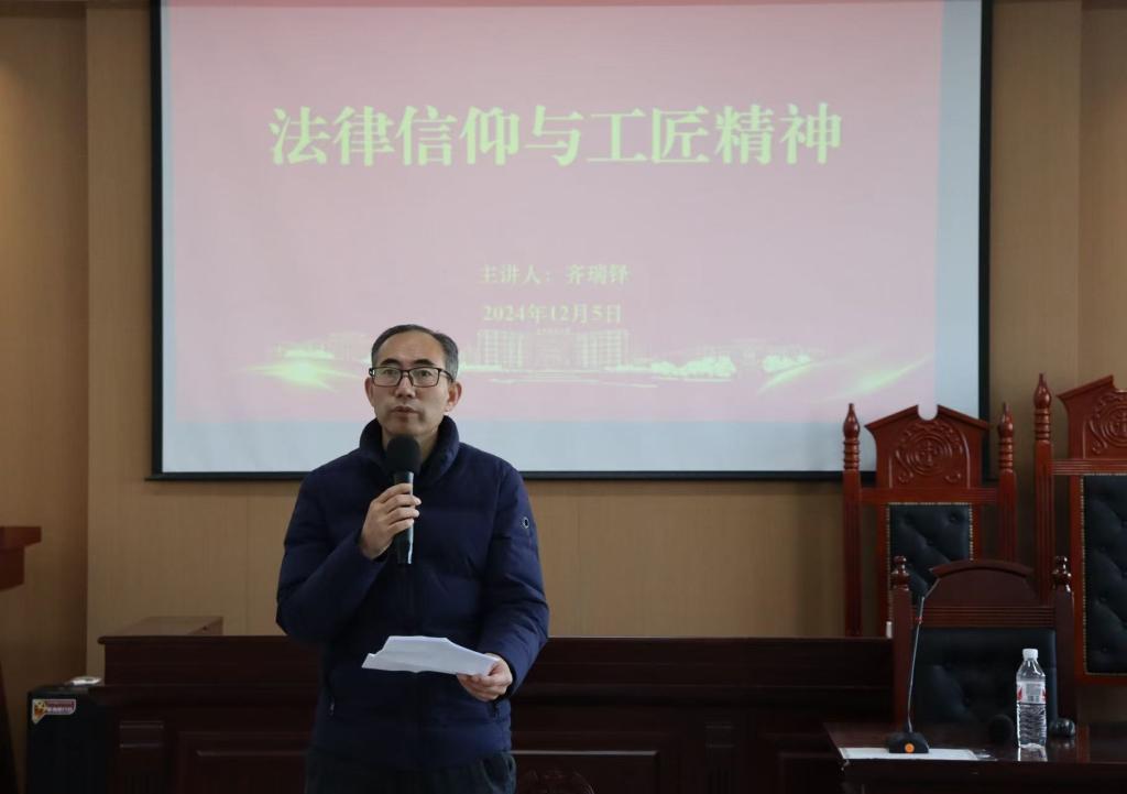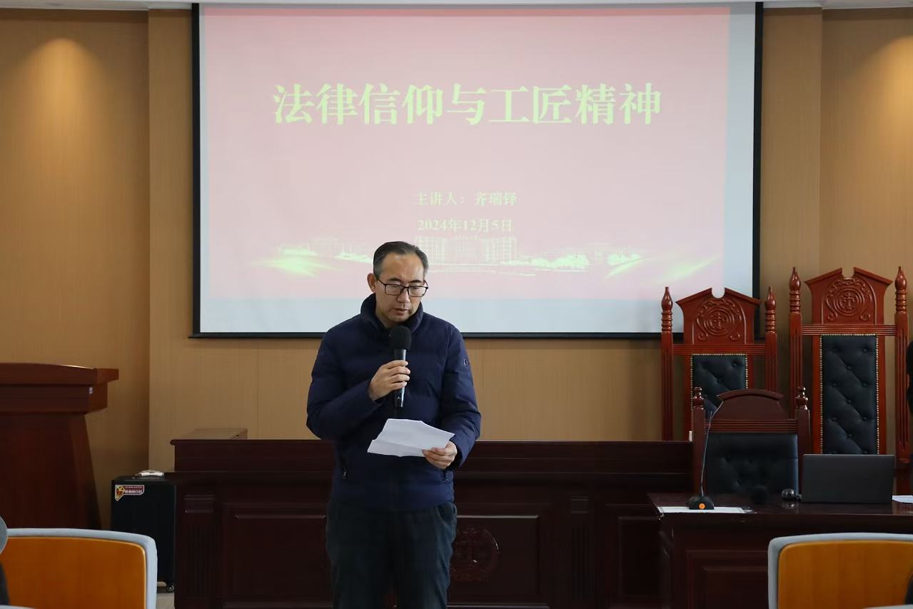 12月5日,经法学院于博识楼A402开展“法律信仰与工匠精神”主题讲座。本次讲座由学院党委副书记张国华主持,8xbet手机客户端优秀校友、辽宁正铎律师所律师齐瑞铎受邀主讲,大一至大三全体法学专业学生参加。