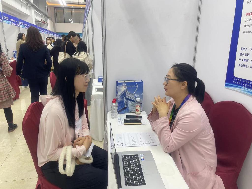 据悉,本场招聘会吸引了来自辽宁省各地的254家律师事务所及驻辽优质企业参会,旨在搭建一个法律人才与用人单位之间交流互动的平台,为法学专业毕业生提供广阔的就业机遇。本次招聘会提供就业岗位超2000个,涵盖了法律服务的各个领域,从律师、法律顾问到法务专员等职位一应俱全,为法学专业毕业生提供了丰富的选择空间。招聘会现场,各用人单位设立了醒目的招聘展板,详细地列出招聘需求、岗位条件以及薪资待遇等信息,吸引了众多法学专业毕业生驻足围观。经法学院法学专业毕业生们手持简历,积极与用人单位沟通交流,寻找适合自己的就业岗位并进行简历投递。学院领导、老师在现场为毕业生提供指导,分析岗位特点,帮助他们更好地了解招聘流程,合理评估自己的职业发展方向。老师们积极与用人单位交流,了解他们的用人需求和发展方向,为毕业生的就业指导工作积累了宝贵的经验。