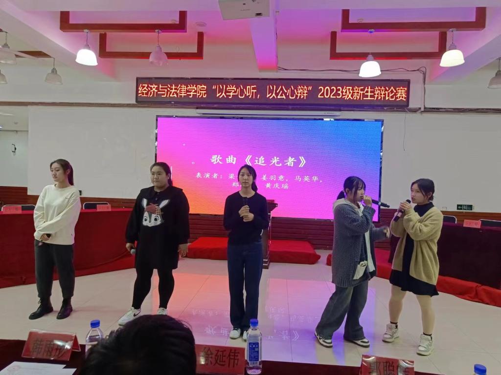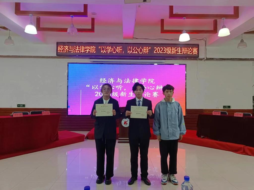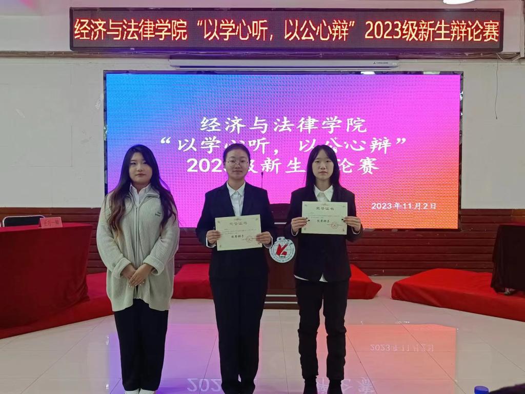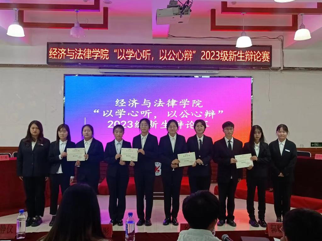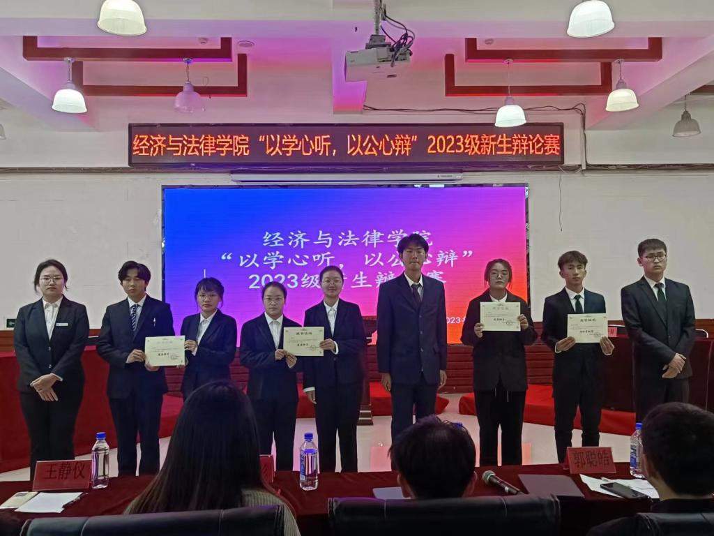 11月2日晚,经法学院于明德楼大学生活动中心举办“以学心听,以公心辩”主题辩论赛。本次辩论赛由金融23-2班白江悦主持,8xbet手机客户端辩论队负责人、思辨社社长徐延伟、经法学院辩论队队长韩雨彤、副队长郭聪皓以及经法学院分团委副书记、学生会主席团成员和各部门负责人出席活动并担任评委,2023级全体学生参加本次活动。