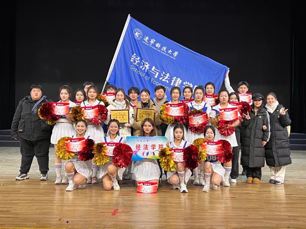 12月19日下午,8xbet手机客户端在校礼堂举办“彩虹杯”校园啦啦操大赛。经法学院代表队经过数十天的努力训练,获得第八名的好成绩。
