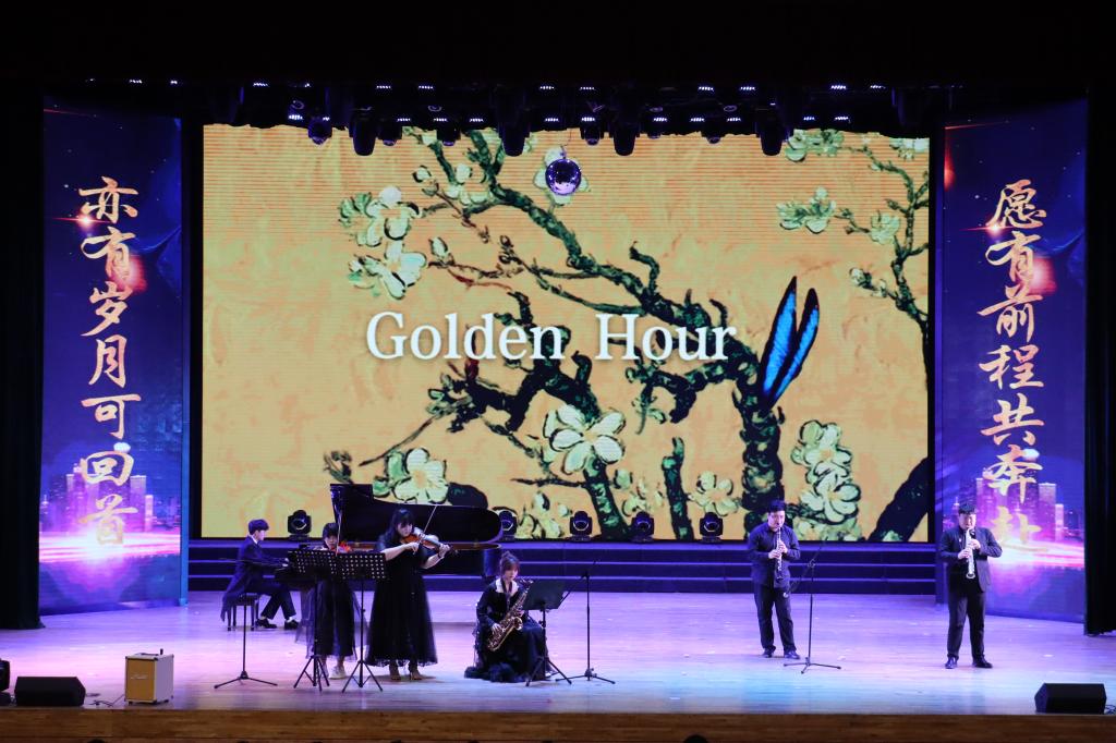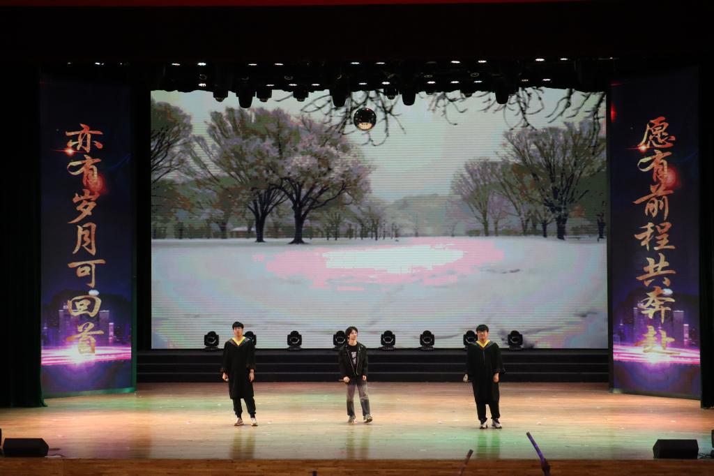 毕业在即,骊歌唱起,共赴前程。由汀兰民乐社带来的《盛世国乐》、材冶学院和理学院学生共同演奏的《鸳鸯戏》以及YOLO西洋乐乐队带来的《golden hour》等乐曲充分展现了中国传统音乐的风采魅力和西洋乐的清新明快,让人沉醉。经法学院学生演唱的《浮光》、理学院学生带来的歌曲串烧和材冶学院演唱的《这世界有那么多人》等歌曲满载着毕业生们对校园的依恋、对青春的感慨,离别与感恩之情交织,深深触动现场观众的心。由材冶学院、经法学院带来的爵士舞蹈《wife》及舞蹈串烧以充满个性和创意的方式点燃了全场的热情,现场气氛高潮迭起。朗诵《有你的夏天》、相声《家风传万代》更是为本次晚会增添了青春独有的色彩,勾起了毕业生们在科大相逢相知的美好回忆,欢笑声中饱含着对母校的深深眷恋。