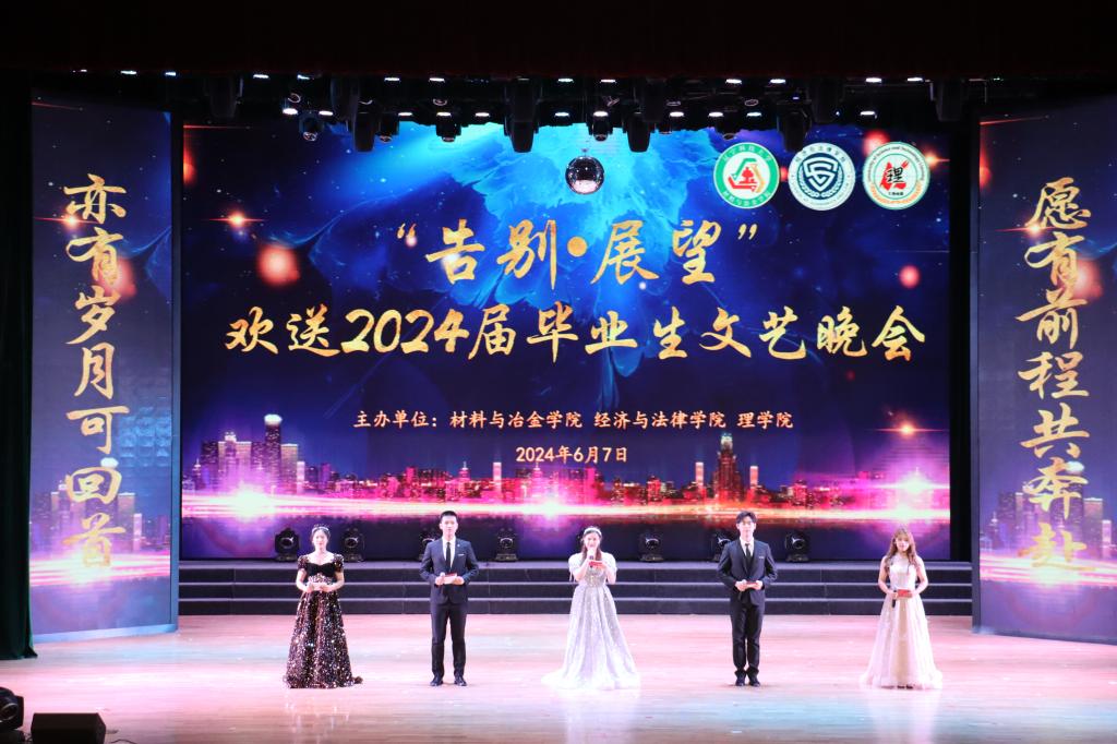 蝉鸣伊始,夏风已至,又是一年毕业季。6月7日晚,经法学院联合材冶学院、理学院于学校礼堂联合举办“告别·展望”欢送2024届毕业生文艺晚会。经法学院、材冶学院和理学院近900名师生观看了本次演出。