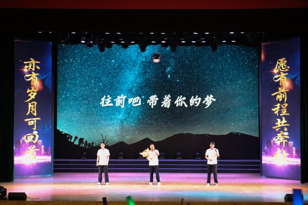 由经法学院副院长温馨带来的《卓玛》、材冶学院包硕老师带来的《讲不出再见》、尚思奇老师带来的《小美满》等歌曲,表达着老师们对学生浓浓的不舍与深切的祝愿;经法学院陈辛迪老师和2024届毕业生白钰仟、孙嘉政带来歌曲《无名的人》,师生同台演唱,让听众沉浸在满是故事与情怀、令人怀念的美好记忆中。最后,全体毕业生们共同观看了老师们的寄语视频,殷殷嘱托,切切期盼,老师的言语间满含着对学生们深深的祝福和殷切的期冀,真挚的话语让在场毕业生热泪盈眶。师生之间美好的双向奔赴,终会化作激励毕业生们在未来的挑战中勇敢前行的深厚力量。