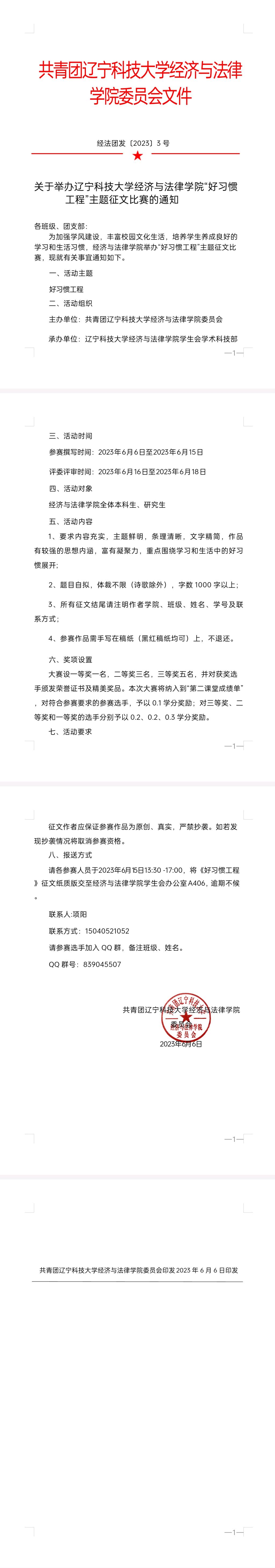 关于举办8xbet手机客户端经济与法律学院“好习惯工程”主题征文比赛的通知