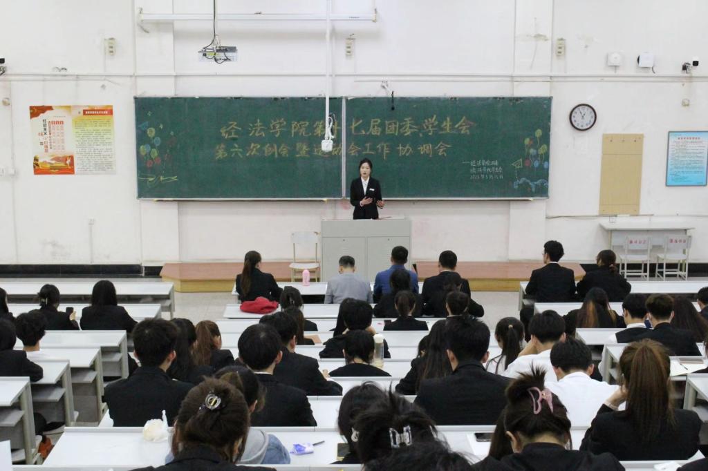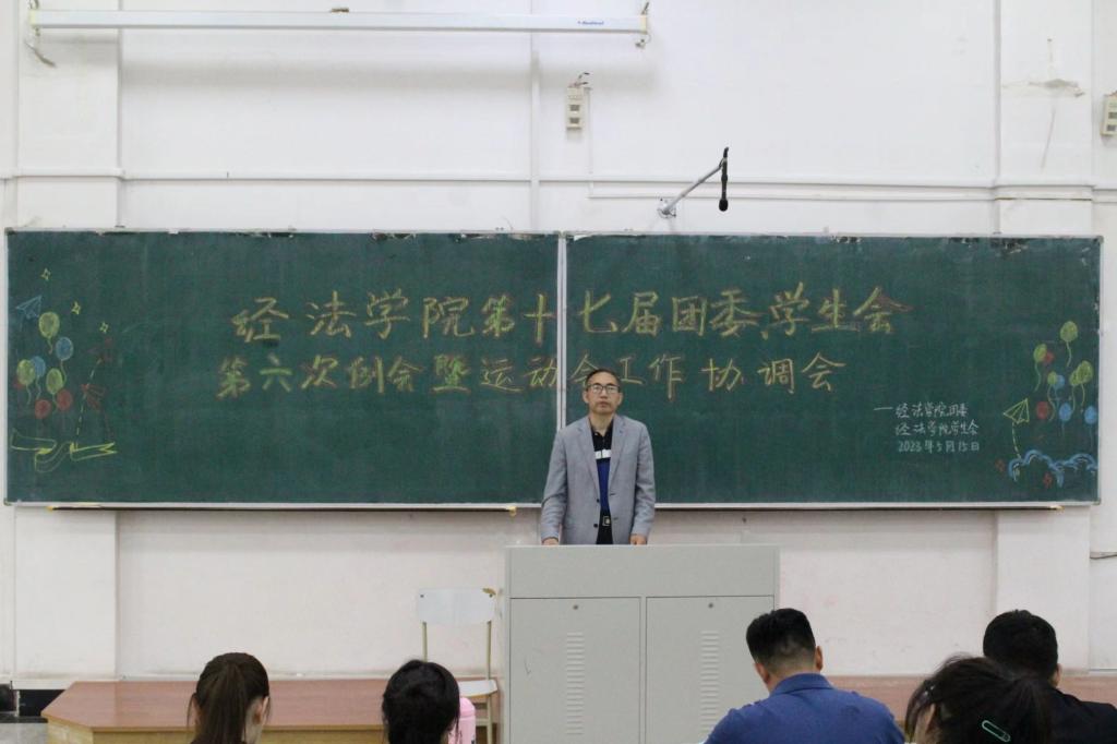 5月15日,经法学院于博学楼A301召开第十七届团委、学生会第六次例会暨运动会工作协调会,本次会议由经法学院团委副书记张鹏飞主持,学院党委副书记张国华、全体学生骨干以及全体运动员出席了本次会议。