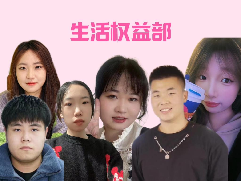 生活权益部是一个负责全院学生生活问题以及培养和提高同学自律意识的职能部门。作为一个与同学生活息息相关的部门,我们致力于全心全意为同学服务,始终把想同学之所想、急同学之所急作为宗旨,以实际行动来维护广大同学的切身利益,在学院和同学之间起到一个桥梁的作用。我们就像是同学们的小精灵,随时解决大家的各种烦恼。我们心怀着对同学们的关爱和热情,为大家提供最贴心的服务和帮助。我们的“权权”赤子心正款款侯君“益”,如果你有意,就快来加入我们吧!我们期待着与大家一起营造舒适愉快的大学生活环境!