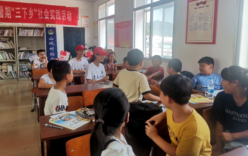 在山城村孩子们的期盼中,8xbet手机客户端经法学院“小红帽”志愿者们又一次如期来到。他们不仅帮助村里的中小学生辅导功课,还给他们讲法治、军事和航天科技等平时接触不到的知识,让山里的娃娃们大开眼界。志愿者们还带领孩子们进行体育锻炼和除草、打扫卫生等活动,使孩子们得到全面锻炼。