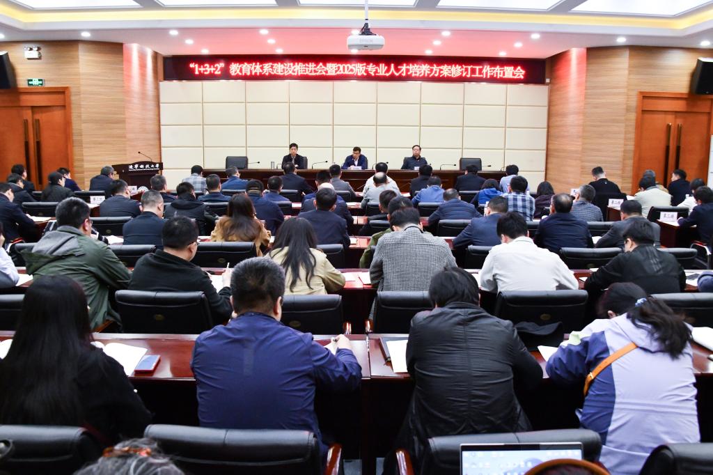4月10日,8xbet手机客户端组织召开“1+3+2”教育教学体系建设推进会暨2025版专业人才培养方案修订工作推进会,校党委书记孟劲松、党委副书记、校长胡军出席会议,党委常委、副校长李胜利主持会议,全校各学院领导班子成员、系主任、专业负责人、学生处、招就处、团委、图书馆负责人、教务处、教学质量监控与评估中心负责人及科级以上相关人员共同参会。