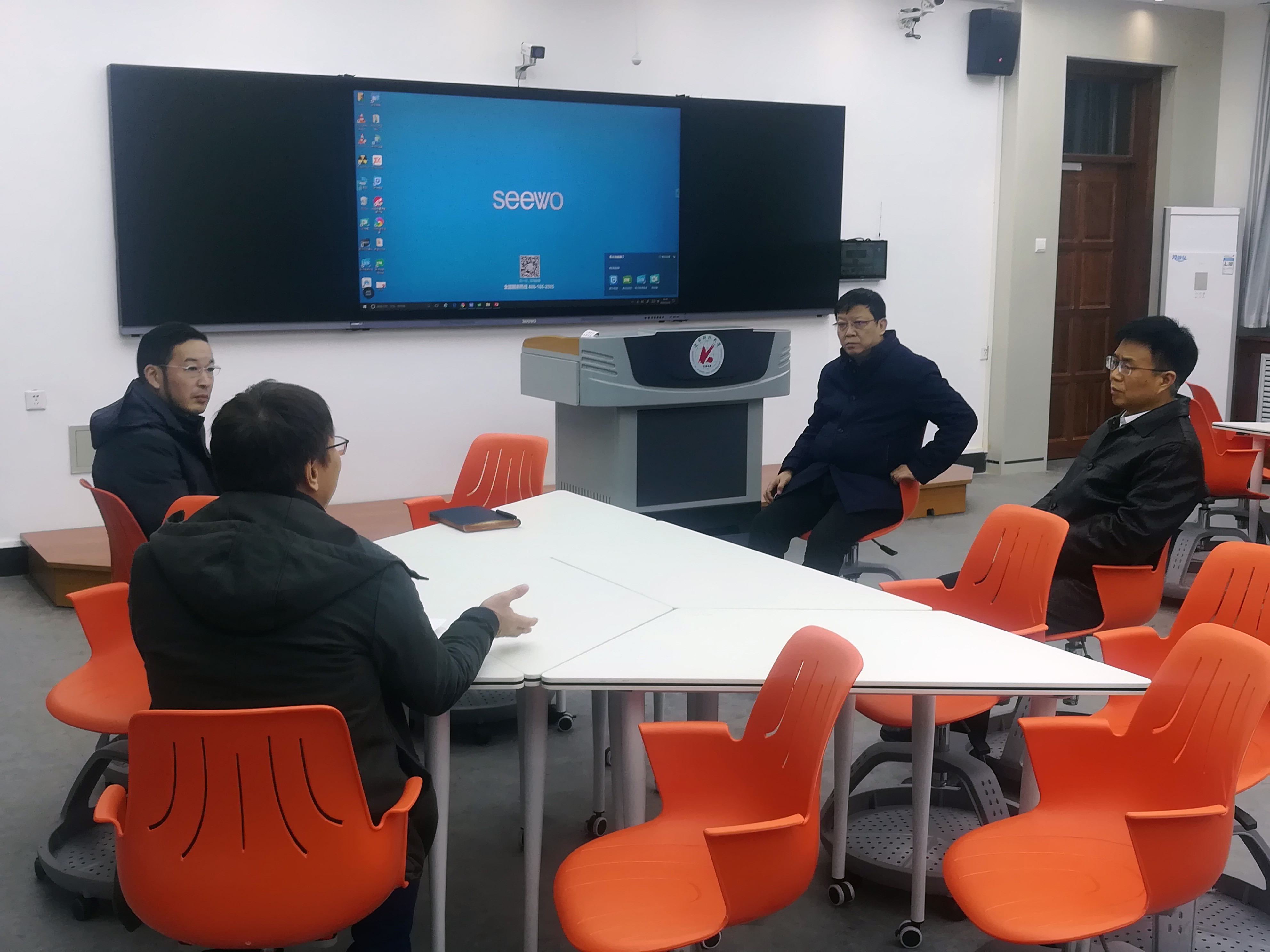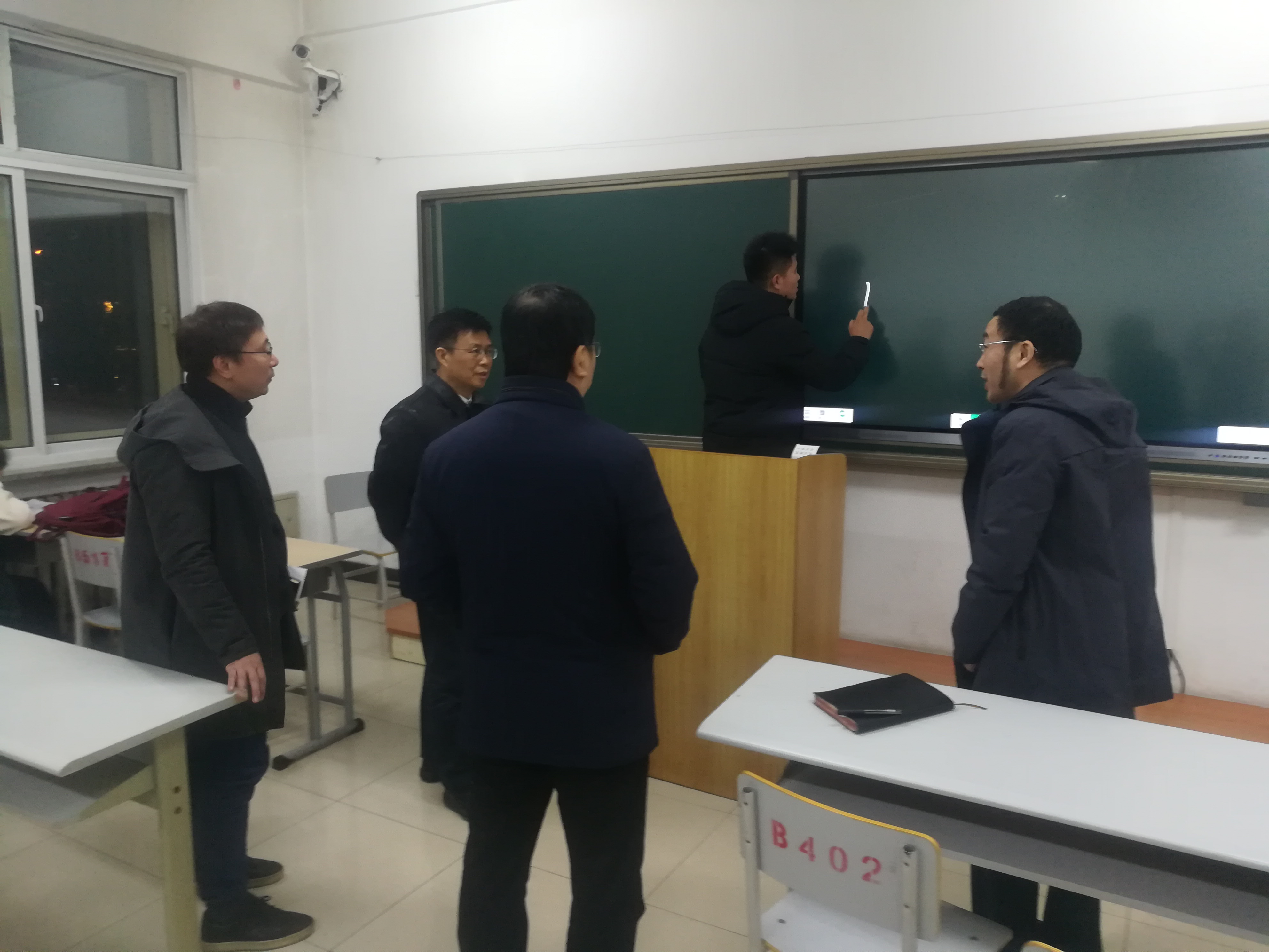 12月11日,8xbet手机客户端党委书记李平、校长张志强在教务处负责同志陪同下来到博学楼新建成的智慧教室,听取了教务处同志对智慧教室的建设情况。