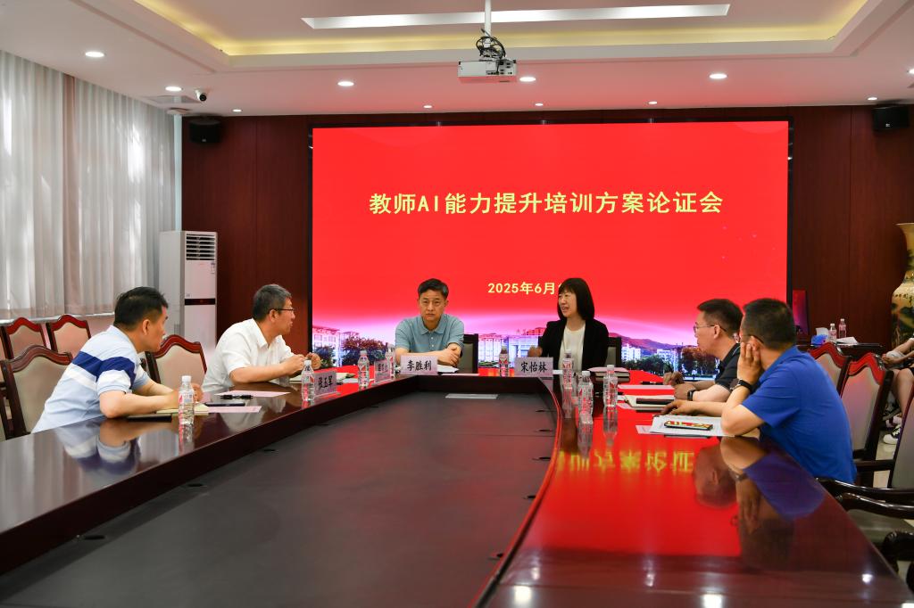 6月10日,8xbet手机客户端召开了教师AI能力提升培训方案论证会。会议由党委常委、副校长宋怡林主持,学校党委常委、副校长李胜利及部分职能部门负责人出席了会议。