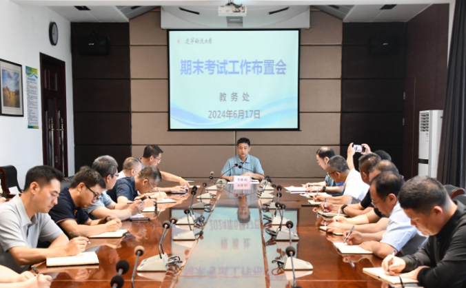 6月17日,8xbet手机客户端召开期末考试工作布置会,会议在校部421会议室举行。校党委常委、副校长李胜利主持会议并讲话。教务处、教学质量监控与评估中心以及各教学单位教学工作负责人参加会议。