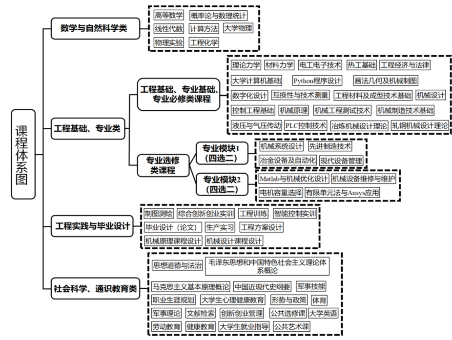 本专业立足辽宁、面向全国经济社会发展需求,培养热爱祖国、理想信念坚定、身心健康,具有人文社会科学素养、社会责任感、职业道德和团队合作精神的社会主义建设者和接班人。具有现代机械工程领域相关基础理论、专业知识和基本技能,具备一定国际视野、创新能力和沟通能力,能够胜任机械行业特别是冶金机械行业中工程设计、装备制造、技术开发、经营管理以及与工程科学研究等工作相关的德智体美劳全面发展的应用型高级专门人才。