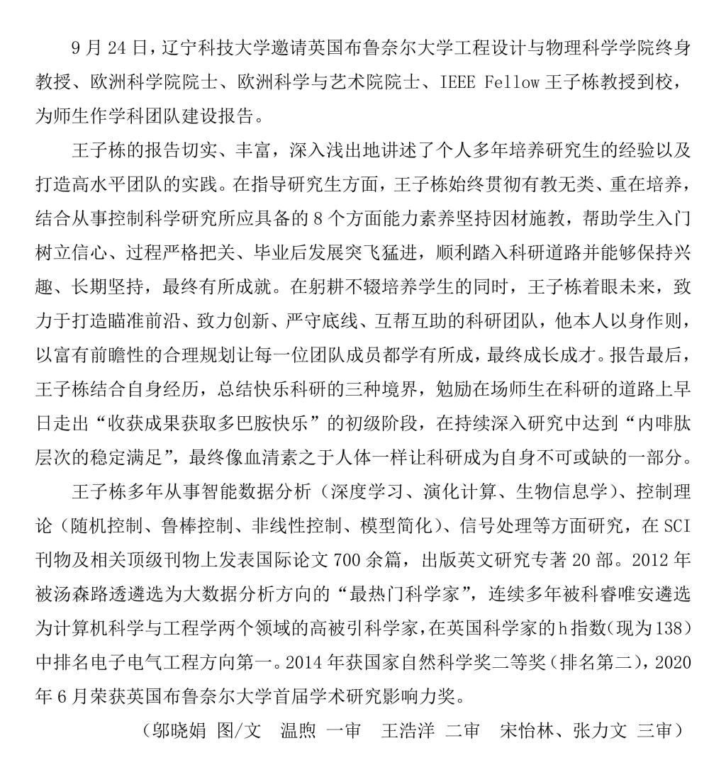 8xbet手机客户端邀请王子栋院士作学科团队建设报告