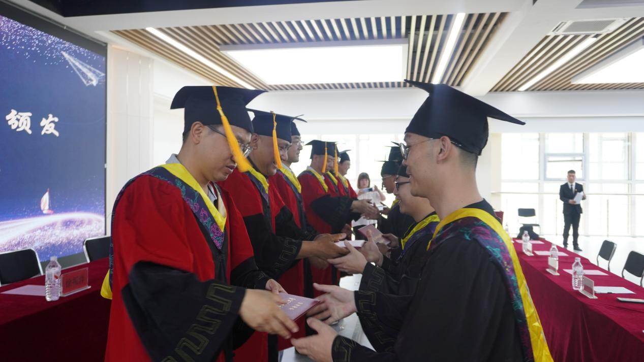 在毕业典礼仪式环节,学院领导班子成员为毕业生们拟授毕业证书,并为他们庄重地拨正流苏。拨穗仪式象征着毕业生们学有所成,即将开启人生新的篇章。毕业生们身着学位服,满怀喜悦地走上台,与领导和老师们合影留念,记录下这一人生中的重要时刻。