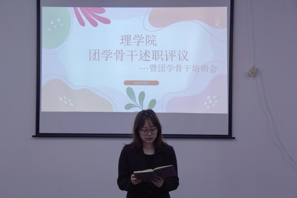 为了进一步加强理学院团组织建设,激发团员骨干的责任感与使命感,促进团工作的持续健康发展,理学院于 9月26在明贤楼B311会议室举行了理学院团学骨干述职评议会暨干部培训会。此次会议旨在通过述职评议的方式,回顾过去一年团工作的成绩与不足,明确未来方向,共同绘制青春奋斗的新蓝图。
