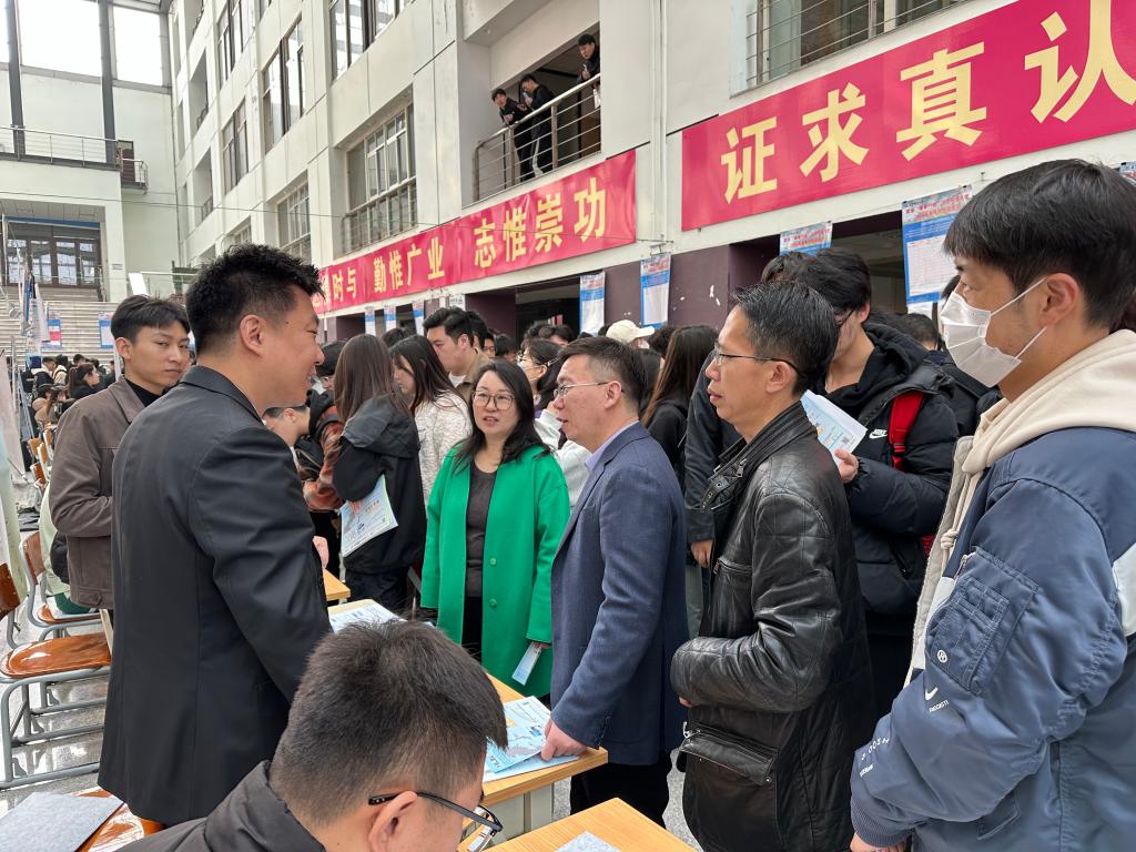 3月23日,8xbet手机客户端2024届毕业生春季校园招聘会在明德楼举办。为了深入了解本次春季校园招聘会的信息,促进理学院毕业生顺利就业,理学院领导班子,系主任和辅导员老师到达现场与各企业单位进行交流,助力毕业生顺利就业。