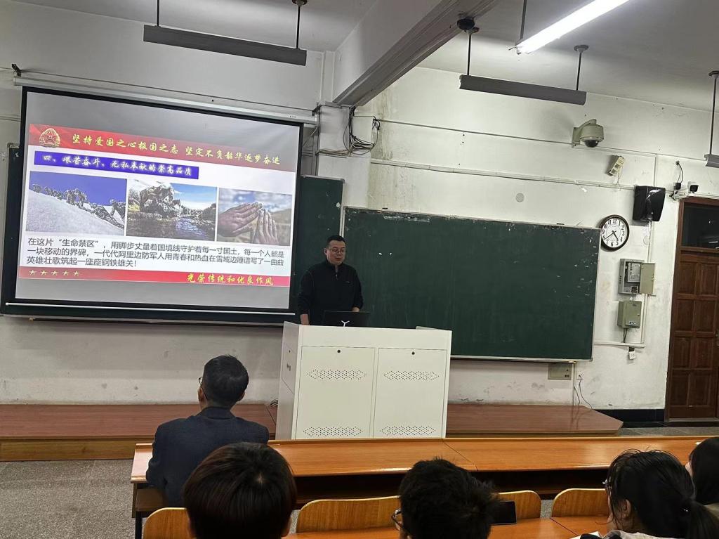 为响应学校关工委号召,按照工作安排,理学院关工委特邀请鞍山第二干休所、政治部负责人倪龙廷主任于10月24日在博学楼C112教室召开主题为“坚持爱国之心报国之志 坚定不负韶华逐梦奋进”的报告,报告围绕国防教育认识,军队光荣传统和青年学子使命担当等三个方面展开,党委副书记侯立臣,理学院学生党员及2023级全体学生参加此次报告会,院团委书记宋薇老师主持会议。