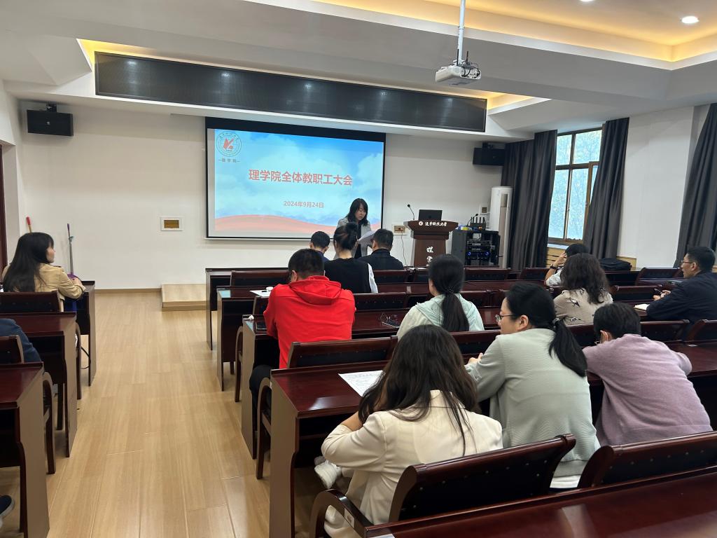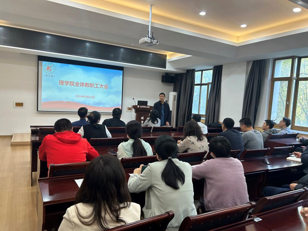 2024年9月24日,8xbet手机客户端理学院在明贤楼B315会议室召开了全院教职工大会。会议由理学院党委书记张春霞主持,全院教职工参加会议。