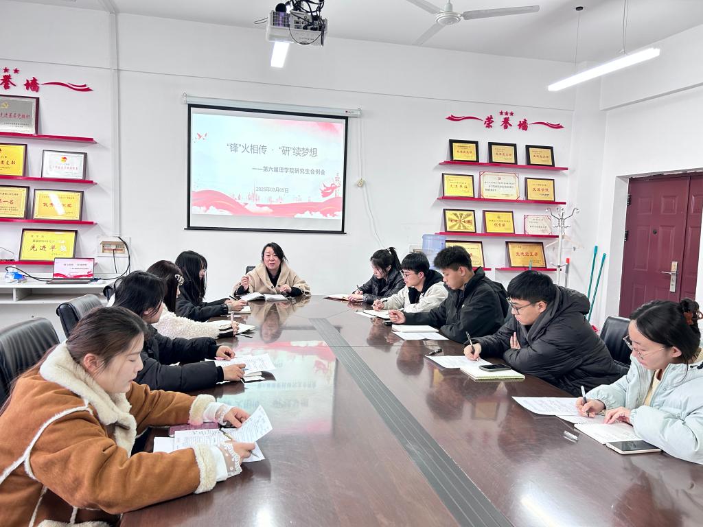 3月5日下午,理学院在明贤楼B311会议室召开了第六届研究生会工作例会。会议由理学院研究生学生会执行主席唐思磊主持,学院党委书记张春霞、24级研究生班主任万晴晴老师出席会议。