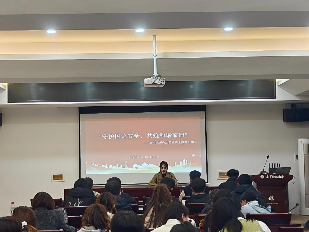 为加强国家安全意识教育,提升学生对国家安全重要性的认识,理学院于4月15日下午3点半在B315教室成功举办了以“守护国之安全,共筑和谐家园”为主题的国家安全教育活动。本次活动由理学院2024级研究生班主任万晴晴老师主讲,理学院2024级学生积极参与。