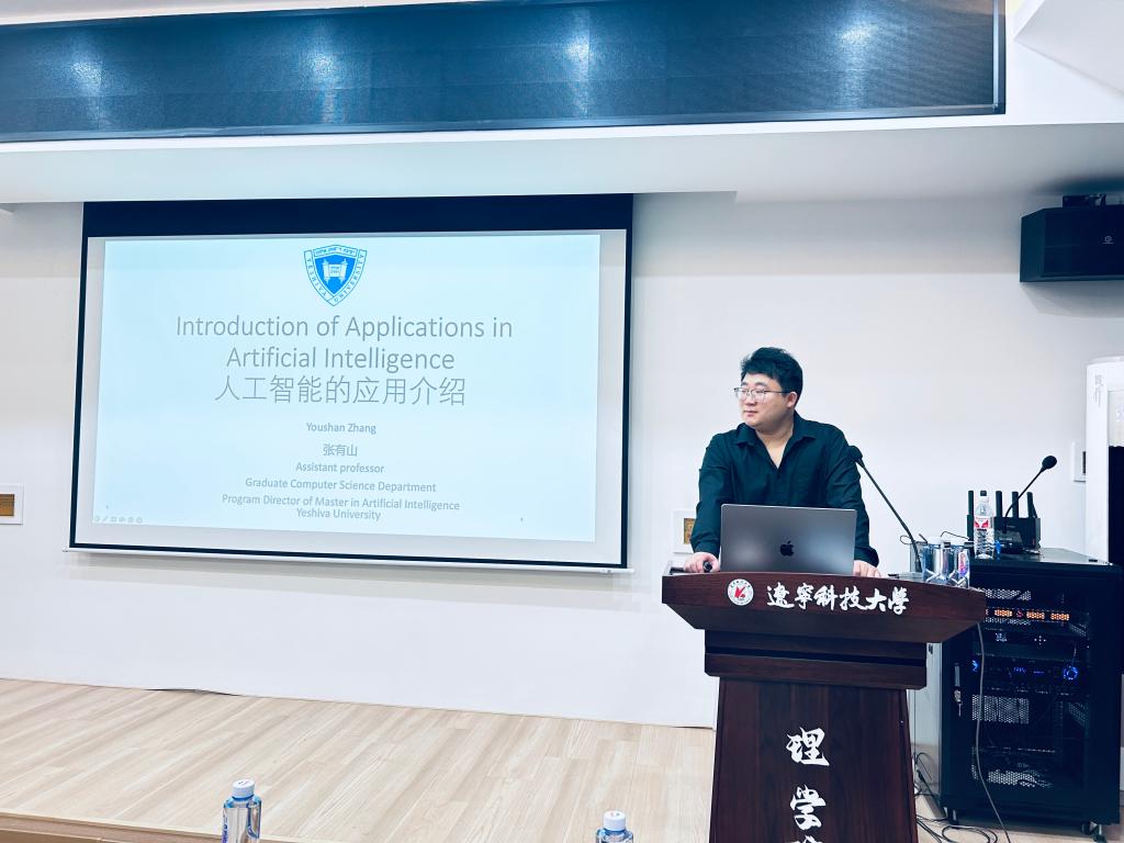 6月26日,8xbet手机客户端理学院在明贤楼B315教室成功举办了题为“Introduction of Applications in Artificial Intelligence”的学术报告会。本次报告会由理学院主办,吸引了众多相关研究领域的教师以及研究生到场聆听,现场气氛热烈,学术氛围浓厚。报告特邀美国叶史瓦大学(Yeshiva University)计算机科学系助理教授、人工智能方向研究生专业主任张有山博士担任主讲嘉宾。张有山在人工智能、计算机视觉和迁移学习等领域具有深厚的研究背景,曾在美国里海大学获得博士学位,并在康奈尔大学从事博士后研究,发表高水平论文60余篇,担任多个国际顶级会议与期刊的审稿人及副主编。