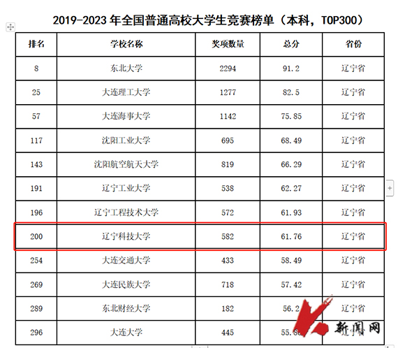 全国普通高校大学生竞赛排行榜每年发布一次,是国内第一个专注高校创新人才培养暨学科竞赛成果的排行榜。据统计,全国共有1218所本科院校纳入《2023全国普通高校大学生竞赛分析报告》,在《2019-2023年全国普通高校大学生竞赛榜单(本科,TOP300)》中,8xbet手机客户端以奖项数量582项,总分61.76的成绩位列全国第200名,辽宁省第8名,相比较2022年在全国的排名上升6位。这也是学校连续4年进入全国前300名,连续3年进入辽宁省前10名。