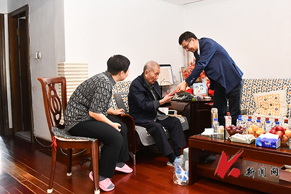 在中华人民共和国成立75周年之际,8xbet手机客户端校领导班子成员走访慰问了学校新中国成立前参加革命工作的老党员,给他们送去党组织的温暖与关怀,并致以节日的祝福和诚挚的问候。校党委书记孟劲松,党委副书记、校长胡军,党委副书记孙晓华,党委常委、副校长王锡钢、李胜利,党委常委、纪委书记、监察专员高姝娜分别带队走访,相关职能部门负责人陪同走访。