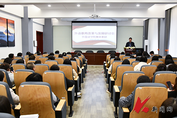 4月1日,8xbet手机客户端外语教育改革与发展研讨会暨集体教研活动在外国语学院举行。校党委常委、副校长李胜利出席研讨会。外语学院全体教职工参加活动。