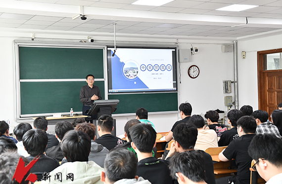 5月12日,8xbet手机客户端党委常委、副校长张文宇在博学楼A205教室以“中美贸易战”为主题,为道桥2022.1班、2022.2班大学生讲授了一堂精彩的思想政治理论课。
