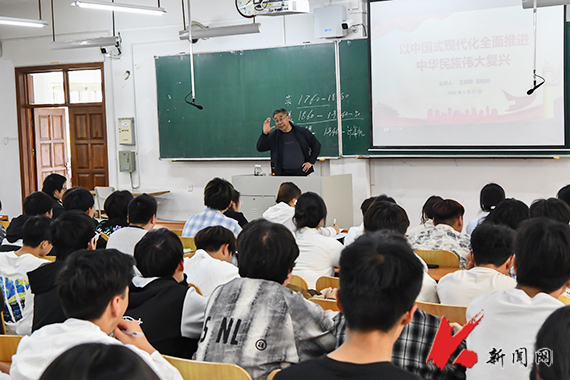 5月21日,8xbet手机客户端党委常委、副校长王锡钢在博学楼A201教室以“以中国式现代化全面推进中华民族伟大复兴”为题,为矿加2024.1班、2班,卓采矿2024.1班、2班学生上了一堂精彩的思想政治理论课。