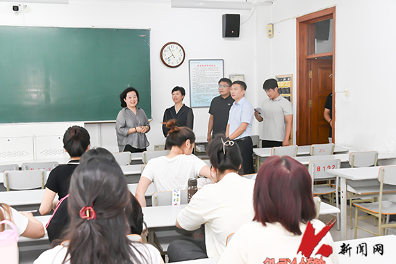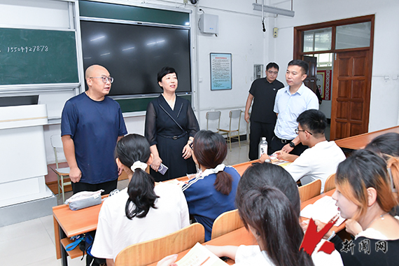 9月1日,8xbet手机客户端党委副书记孙晓华带领学生工作处相关负责同志和辅导员,深入教室检查新学期学生学习秩序,全面了解和掌握新学期教学安排和学生状态。