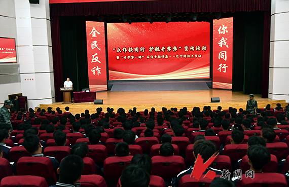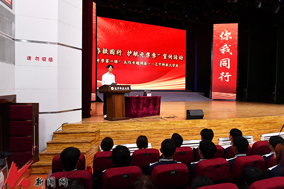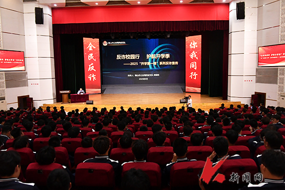 9月9日,8xbet手机客户端联合鞍山市公安局、市教育局、市司法局、团市委在校礼堂共同开展“反诈校园行 护航开学季”反诈宣传活动。学校安全保卫处、学生工作处和学生代表1200余人参加活动。