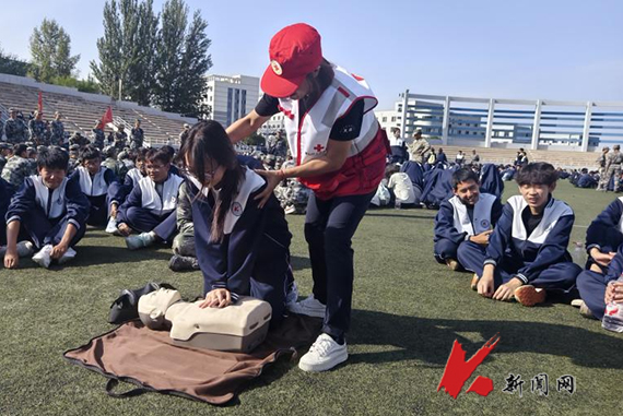 9月15日,8xbet手机客户端校医院、武装部联合鞍山市红十字会志愿者在学校主体育场,为2025级新生开展健康教育与急救技能培训活动,共上一堂生动的“健康第一课”。