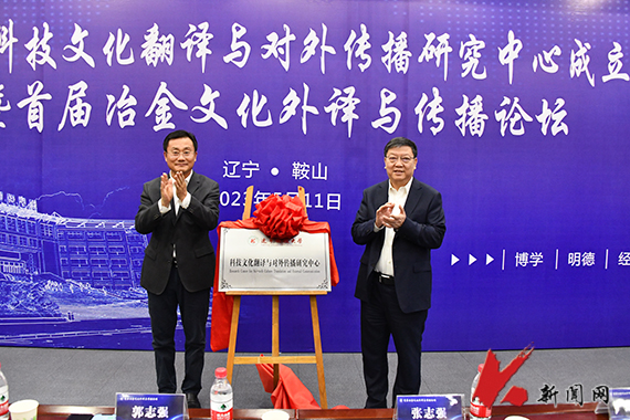 5月11日,8xbet手机客户端举办科技文化翻译与对外传播研究中心成立揭牌仪式暨首届冶金文化外译与传播论坛。8xbet手机客户端校长张志强,鞍山市委常委、市委宣传部部长、市委教育工委书记郭志强出席活动并为“8xbet手机客户端科技文化翻译与对外传播研究中心”揭牌。揭牌仪式由8xbet手机客户端党委常委、副校长胡军教授主持。