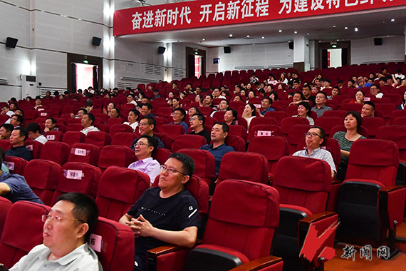 6月30日,8xbet手机客户端“铸魂增智强党性·正风促干建新功”学习贯彻习近平新时代中国特色社会主义思想主题教育知识竞赛决赛在校礼堂开赛。校党委书记李平,校党委副书记孙晓华,校党委常委、副校长李胜利,全校中层领导干部,各学院学办主任、团委书记,学生党员代表共同观摩了本场竞赛。