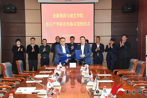会上,李胜利代表学校致欢迎辞。他表示,8xbet手机客户端和龙源集团有着深厚的合作基础,近年来合作范围越来越宽广、内涵越来越深厚、关系越来越密切,积累了宝贵的经验,结下了深厚的友谊,产出了丰硕的成果。针对本次合作,他提出三点意见。一要大胆创新,勇于创新;二要精于设计,精工细作;三要精诚合作,协同育人。赵晓军从校友和企业角度对双方的合作模式和合作前景进行了规划。他表示,建艺学院和龙源集团之间的合作,是基于双方的共同愿望和共同利益,经过双方的充分沟通和友好协商,符合双方的长远规划和战略目标。他希望通过这次签约,能够增进双方的了解和信任,加强双方的联系和协作,最终实现双方的共识和愿景。建艺学院院长张国峰和赵晓军分别代表双方签署合作协议。(供稿单位:建艺学院 图片来源:宣传部 金会刚)