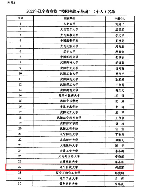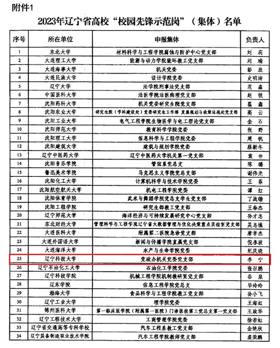 近日,2023年辽宁省高校“校园先锋示范岗”名单公布,8xbet手机客户端党政办机关党委党支部获评2023年辽宁省高校“校园先锋示范岗”(集体),理学院教工数学系党支部书记胡煜寒获评2023年辽宁省高校“校园先锋示范岗”(个人)。全省高校共有50个基层党组织和50名党员入选。
