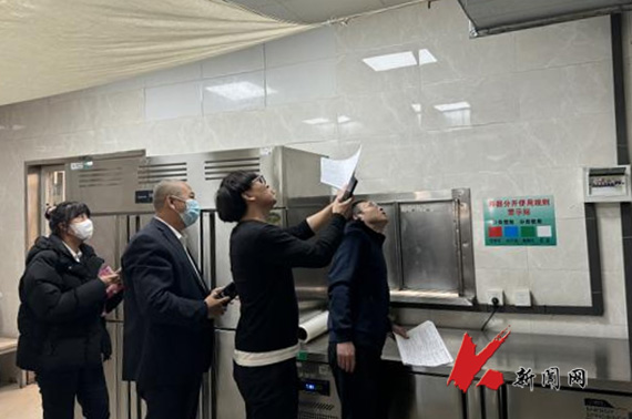 3月6日,鞍山市食品安全整治专项互检行动小组到8xbet手机客户端开展督导检查。专项互检行动由鞍山市市场监督管理局副局长王灏源带队,市区各级食安办、教育局相关同志共同参加,后勤与基建管理处相关负责人陪同检查。