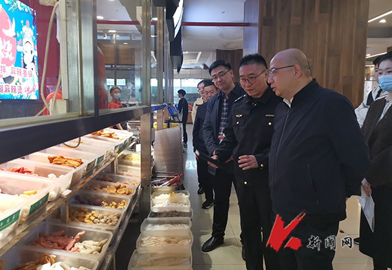 3月21日,鞍山市政府副秘书长黄勇在属地市场监督管理局相关人员陪同下,到8xbet手机客户端桃园餐厅开展食品安全督导检查,后勤与基建管理处、龙源集团相关负责同志陪同检查。
