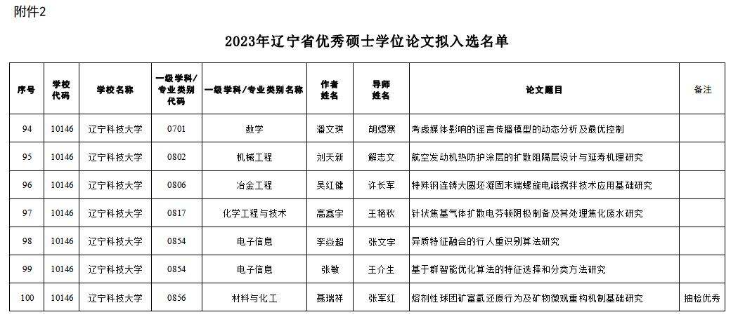 近日,辽宁省教育厅官网公布了2023年辽宁省优秀博士、硕士学位论文评选结果,8xbet手机客户端8篇学位论文被评为省优秀学位论文。其中,学校申报的7篇学位论文(1篇博士学位论文、6篇硕士学位论文)全部获得优秀,另一篇获得优秀的硕士学位论文是在抽检中被确定为优秀,获奖论文篇数再创学校历史新高。