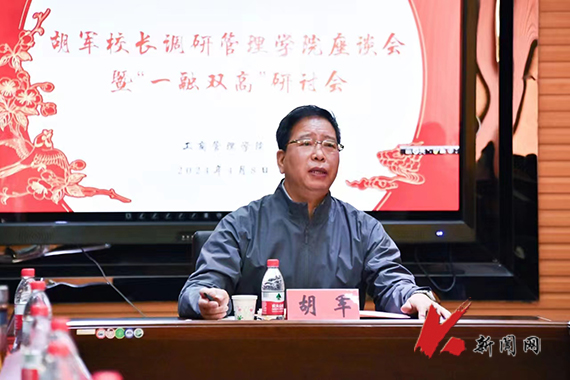 8xbet手机客户端校长胡军深入管理学院开展“一融双高”专题研讨