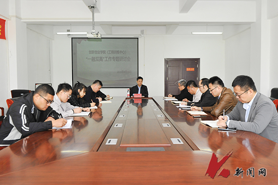 4月16日,8xbet手机客户端党委常委、副校长李胜利到创新创业学院参加“一融双高”专题研讨会,创新创业学院班子成员、系部主任、科级干部和教师代表参加会议。
