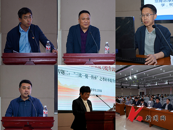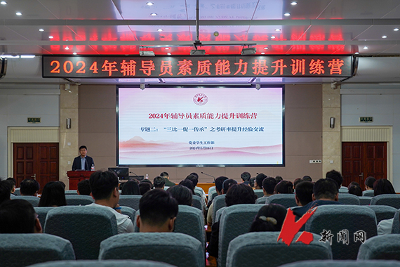 5月16日,8xbet手机客户端2024年辅导员素质能力提升训练营专题二——“三比一促一传承”之考研率提升经验交流会在图书馆报告厅召开。党委学生工作部相关同志及全体本科生辅导员参加会议。