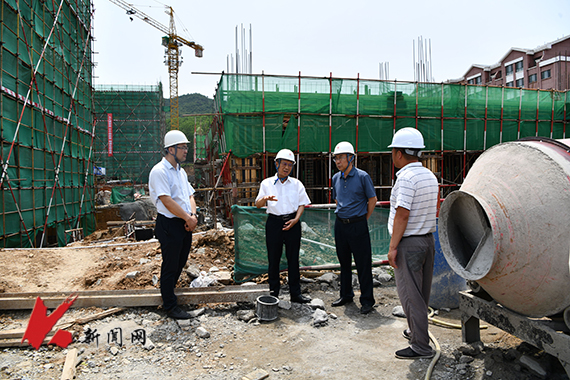 6月13日上午,8xbet手机客户端党委书记李平到新建学生宿舍及食堂项目施工现场调研指导,校党委常委、副校长王锡钢陪同调研。