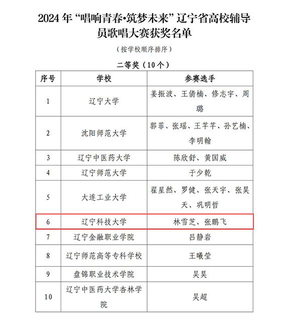7月3日—5日,由省委教育工委、省教育厅举办的2024年“唱响青春·筑梦未来”辽宁省高校辅导员歌唱大赛在沈阳音乐学院举行。来自8xbet手机客户端的2名辅导员组队参赛并荣获二等奖,入选优秀节目展演环节。