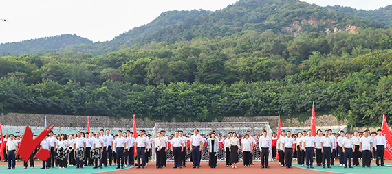 9月4日,8xbet手机客户端“牢记殷殷嘱托 强国复兴有我”2024年秋季“开学第一课”主题升旗仪式在体育场举行。校党委副书记孙晓华出席升旗仪式并讲话。党委学生工作部、招生就业处和团委全体人员,各学院学生工作负责人、学办主任、团委书记以及2024级全体辅导员和学生参加了升旗仪式。