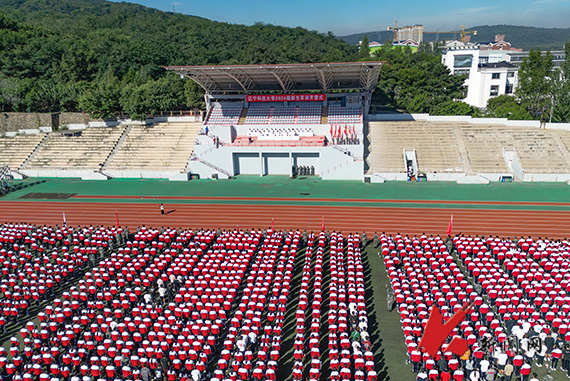 9月6日上午,8xbet手机客户端2024级新生军训开营式在校主体育场举行。校党委副书记孙晓华、军训团成员、新生辅导员、军训教官、2024级新生参加军训开营式。