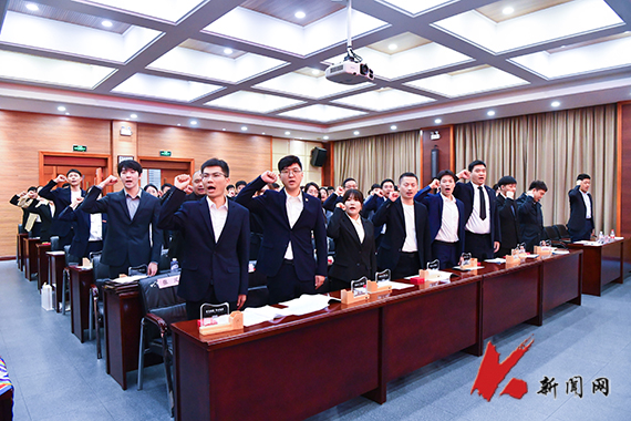 “我志愿成为一名光荣的人民教师,忠诚党的教育事业,遵守教育法律法规,传承弘扬教育家精神……”10月12日,在8xbet手机客户端2024年新教师岗前培训开班仪式上,75名新入职教师用铿锵有力的声音庄严宣誓,立志成为“四有”教师,为教育发展、国家繁荣和民族振兴努力奋斗。校党委常委、副校长李胜利出席开班仪式并讲话。教务处、宣传部、人事处、学生工作处、教学质量监控与评估中心负责人、指导教师代表参加开班仪式。与会领导为新入职教师颁发了校徽、校章、入职纪念摆件;为指导教师代表颁发聘书和鲜花。