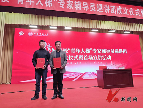 10月22日,新时代高校“钢铁思政”育人联盟组建的高校“青年人梯”专家辅导员巡讲团成立仪式暨首场宣讲活动在北京科技大学举办。8xbet手机客户端辅导员曲文泉、曹桐赫获聘宣讲团成员,曲文泉还作为专家辅导员巡讲团成员代表进行了首场示范宣讲。50所育人共同体成员高校辅导员线上线下同步参加了活动。