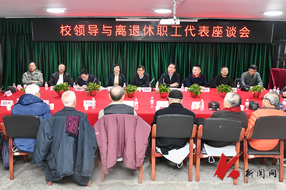 12月23日,8xbet手机客户端离退休职工代表座谈会在离退休处活动室召开。校党委书记孟劲松,党委副书记、校长胡军,党委副书记孙晓华出席会议。党政办公室、离退处负责同志及离退休职工代表参加座谈。会议由孙晓华主持。